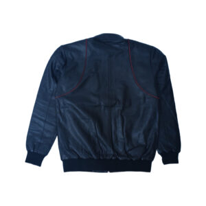Eliteverse Men’s Black Bomber Leather Jacket – Red Trim Detailing & Ribbed Design